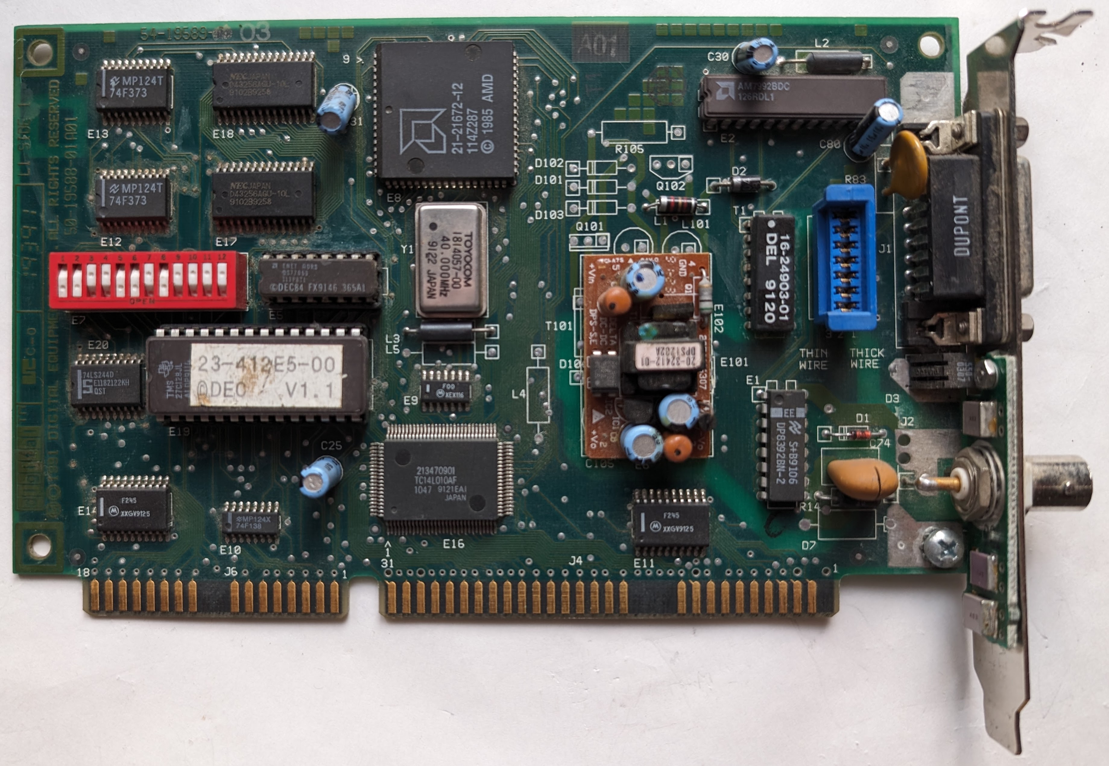 The DEC EtherWORKS Turbo (DE200) is a basic 16-bit ISA Ethernet NIC with 10BASE2 (BNC) and AUI interfaces. It's effectively a slightly newer 16-bit ISA version of the DE100, and is well-supported by virtually all network software.