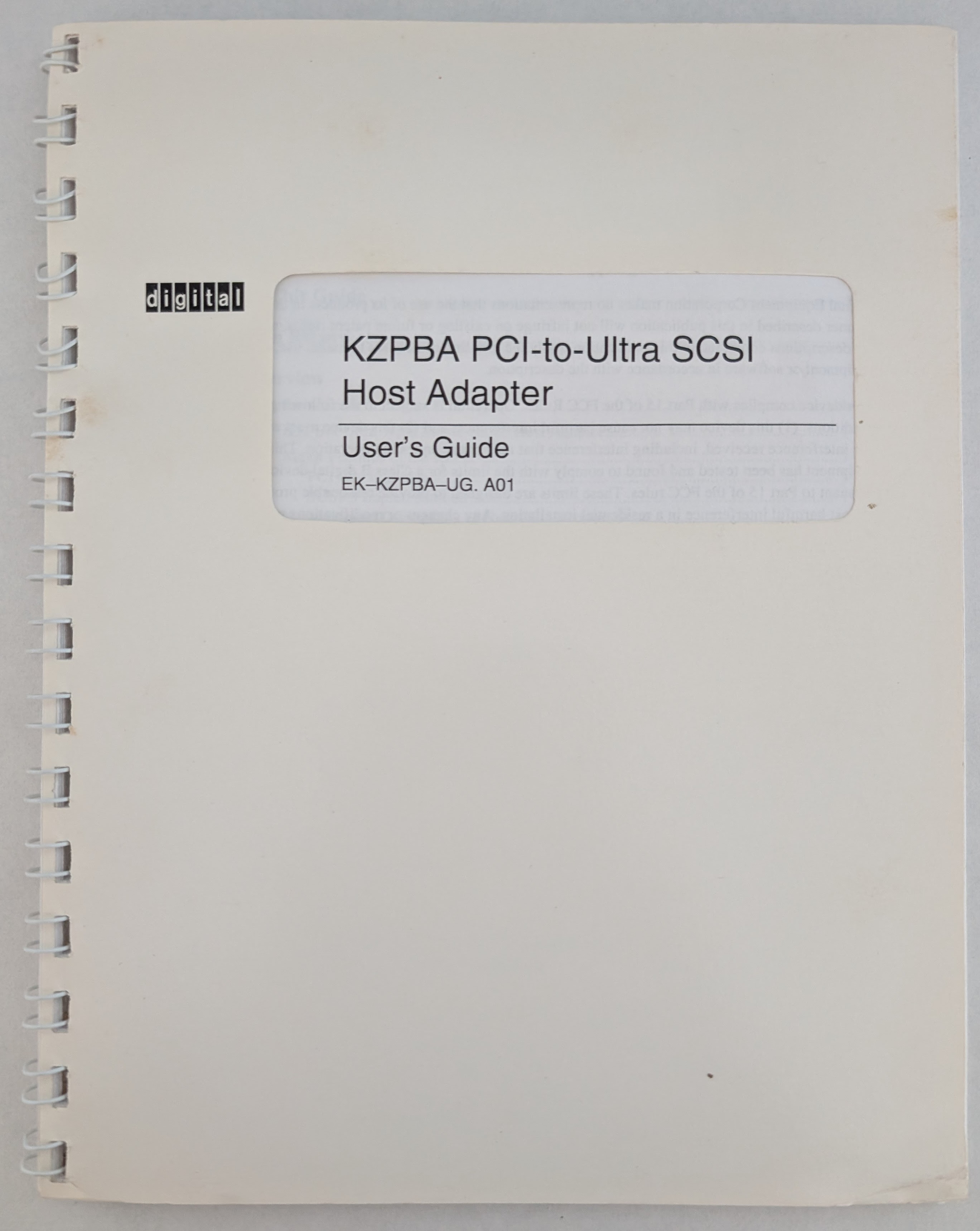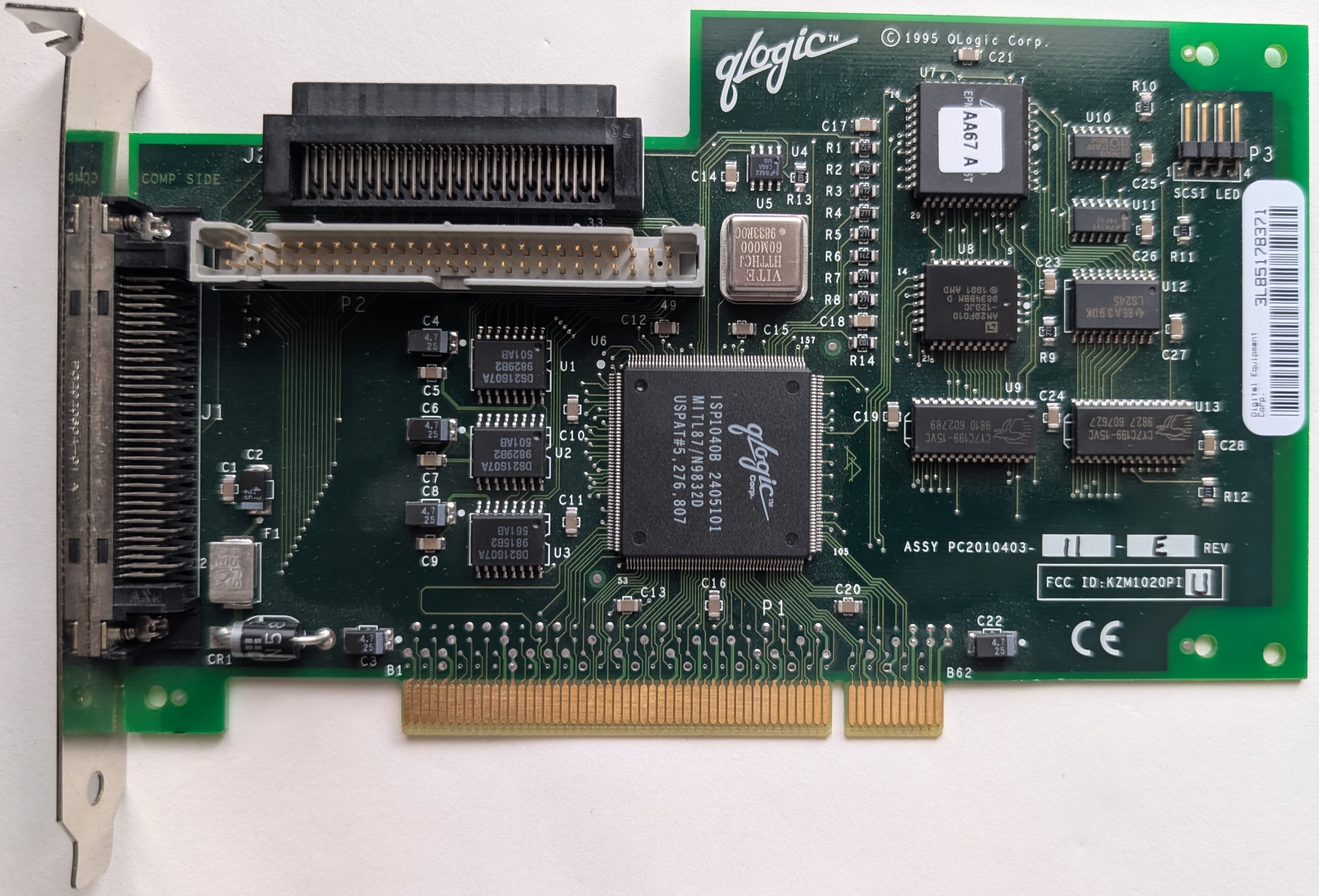The DEC KZPBA-CX (option KZPBA-CA) is a PCI UltraSCSI Host Bus Adapter. DEC seems to have sold these primarily for Alpha workstations and servers, but the manual suggests they should be compatible with x86 PCs as well. The KZPBA was manufactured by QLogic for DEC/Compaq and appears to be based on the QLA1040, though unlike the KZPBA some reports on Usenet suggest the QLA1040 is not compatible with DEC Alpha systems. DEC sold the high voltage differential variant of this card as the KZPBA-CY (option KZPBA-CB).