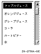 長い選択リストを提示するためには,DECburgerは図 2-11 に示すようなXmScrolledListウィジェットを使用します。この選択リストがディスプレイに表示されるときには, 全項目リストのうちの一部分だけがスクロール・ リスト内に見えています。XmScrolledListウィジェットは, ユーザが一度に複数の項目を選択できるように構成できます。