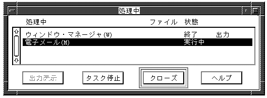 セッション・マネージャは,現在実行中のアプリケーションやファイルビューのタスクを「処理中」ダイアログ・ ボックスで監視します。