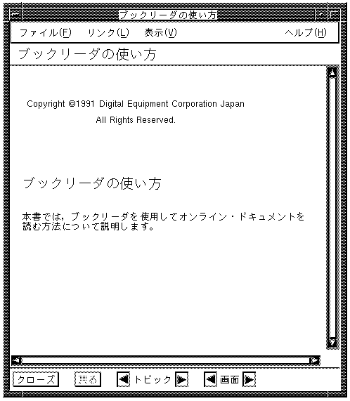 | ブックリーダ | ワークステーション画面にオンライン・ ドキュメントを表示する |