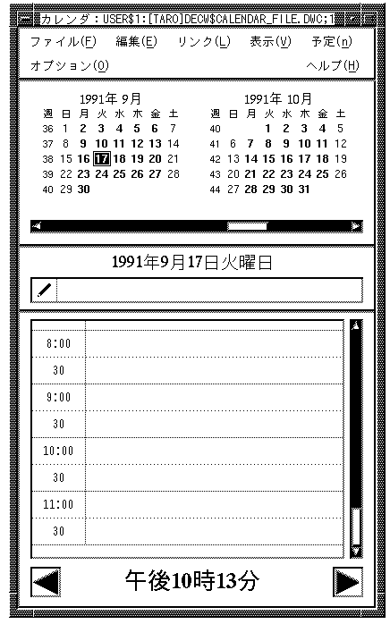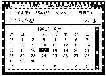 カレンダを起動するには,セッション・マネージャの「アプリケーション」メニューから「カレンダ」を選択します。
