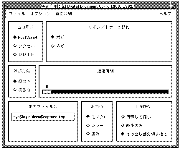 画面印刷のオプションと設定値が「画面印刷」ウィンドウに表示されます。 図 6-17に「画面印刷」ウィンドウを示します。