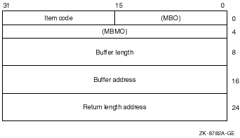 OpenVMS使用法: address of item list type: 64-bit address access: read only mechanism: by value