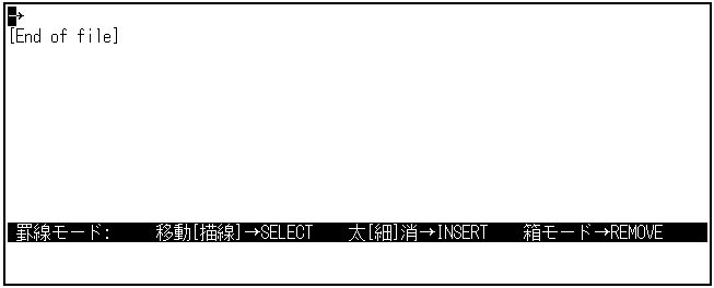 [Remove]キーを押すと,罫線モードから箱モードに切り替わります。 [Remove]キーを押すと,カーソル位置に小さい箱が表示されます。