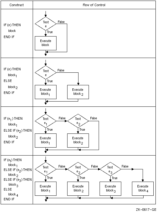 Figure 5-4 shows the flow of control for four examples of IF constructs.