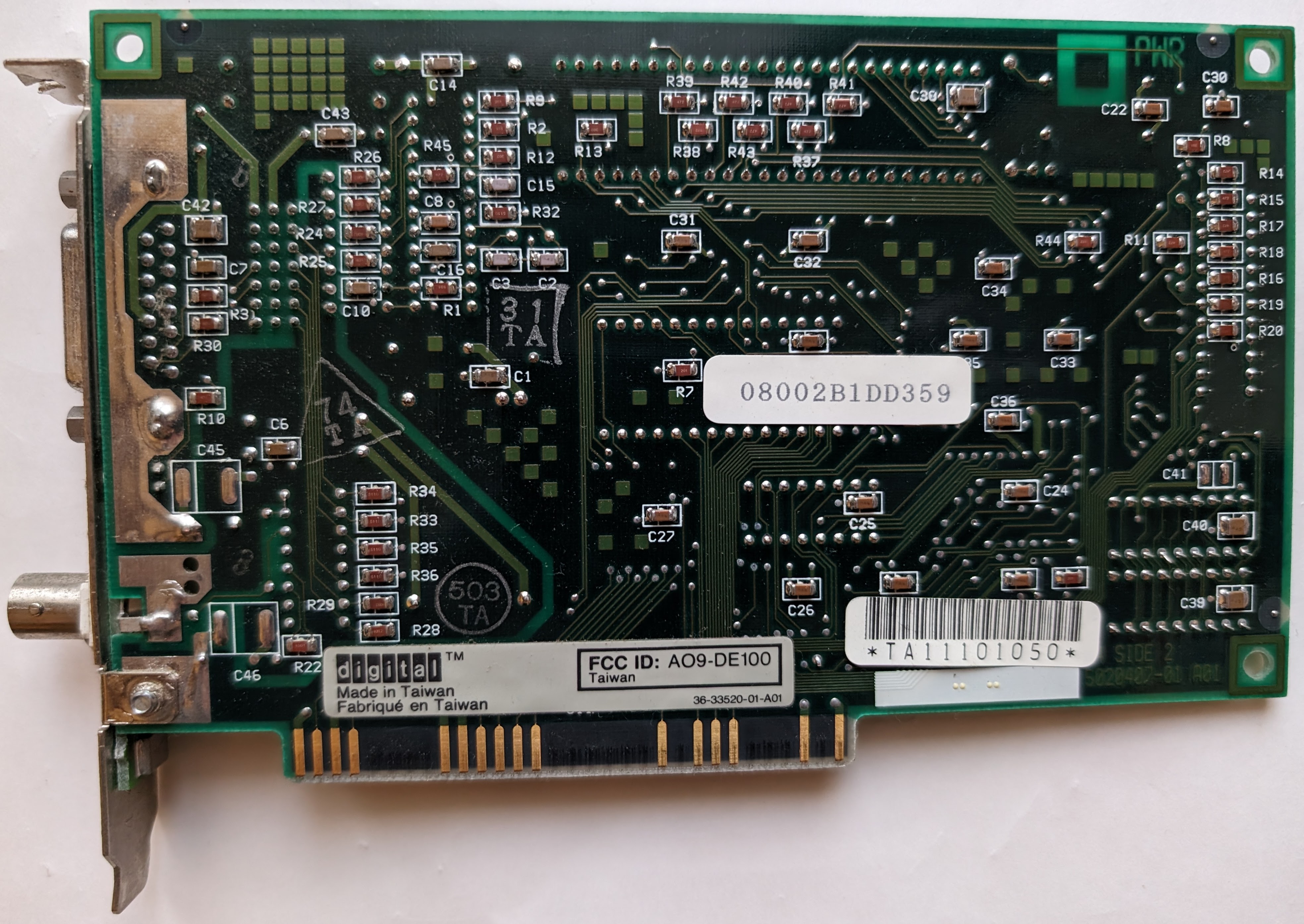 The DEC EtherWORKS LC (DE100) is a basic 8-bit ISA Ethernet NIC with 10BASE2 (BNC) and AUI interfaces. It's a fairly old card that is well-supported by virtually all network software.