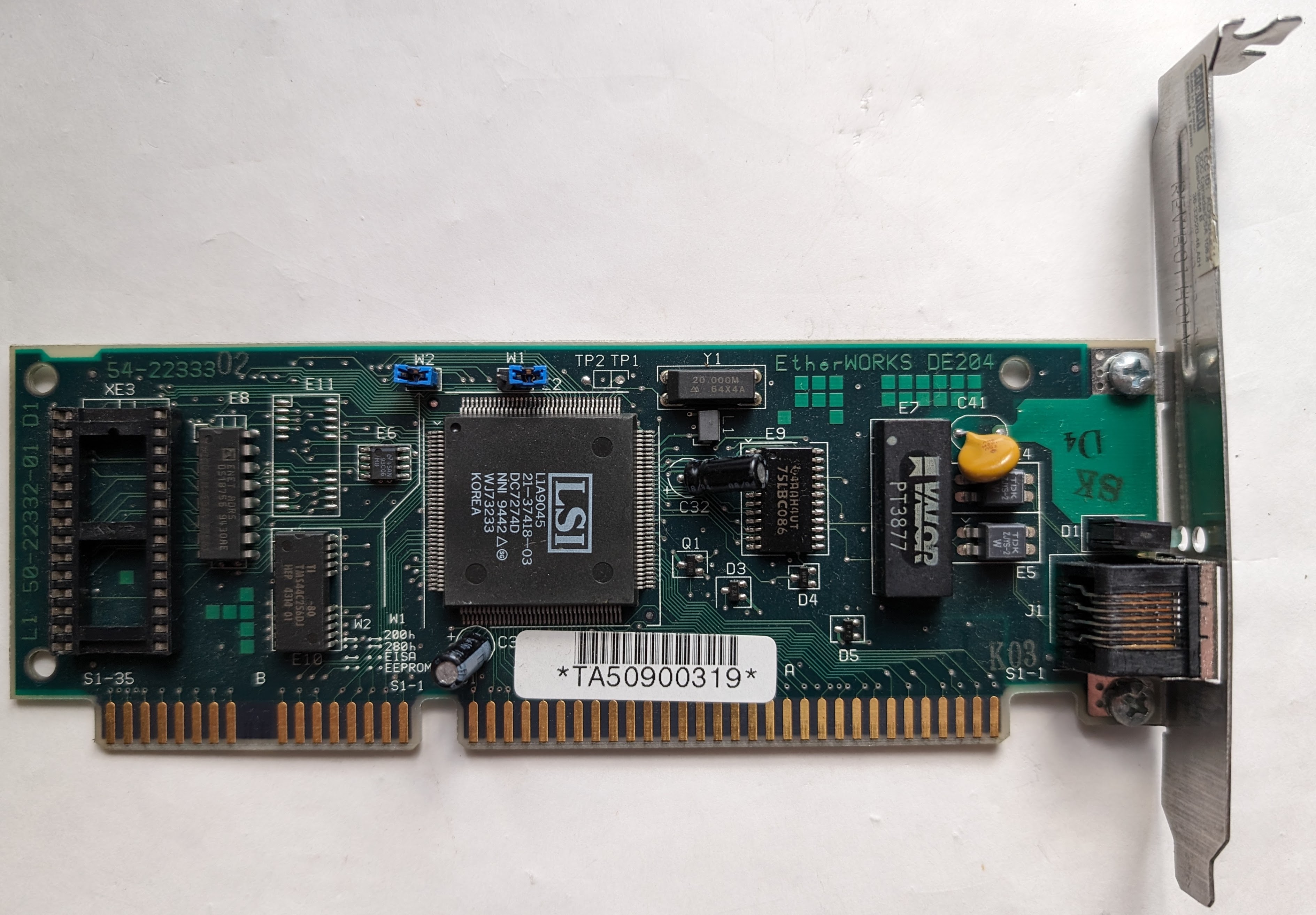 The DEC EtherWORKS 3 Turbo TP (DE204) is a 16-bit ISA Ethernet NIC