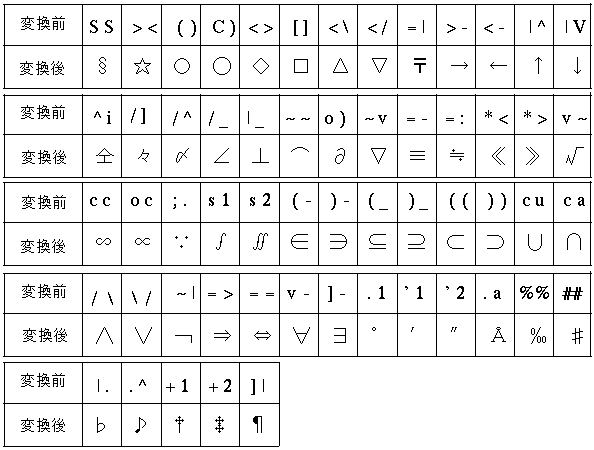記号変換対応表