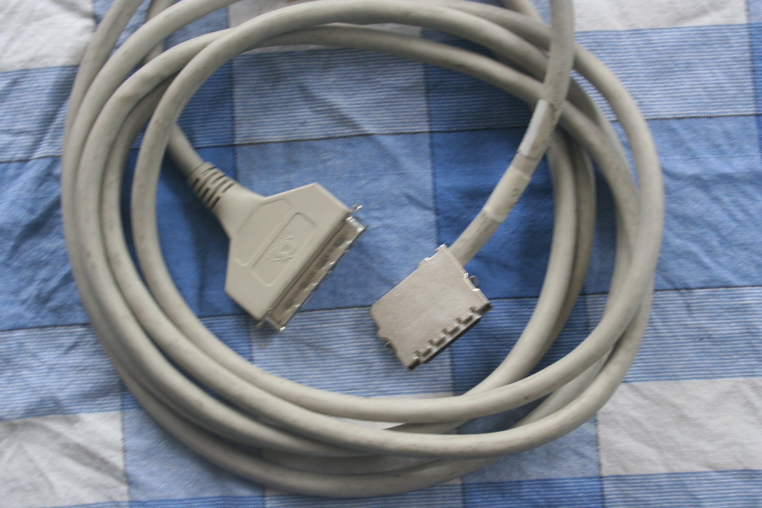 title="One of two SCSI cables for the Emulex SCSI controller. The connectors on the SCSI controller are the wrong gender for normal cables."/>