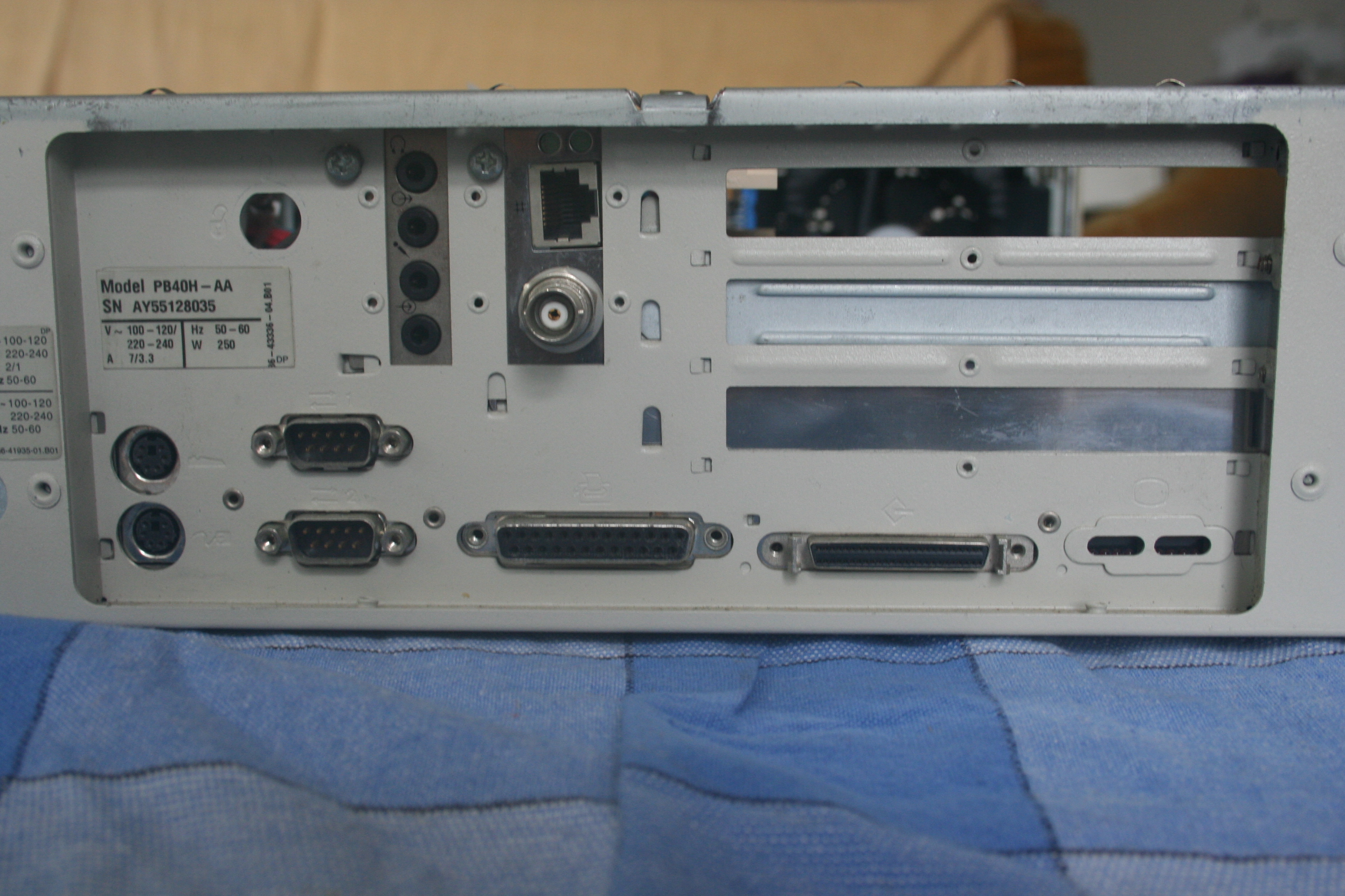 title="Right rear of the case showing ports, lock hole (the lock was removed), etc."/>