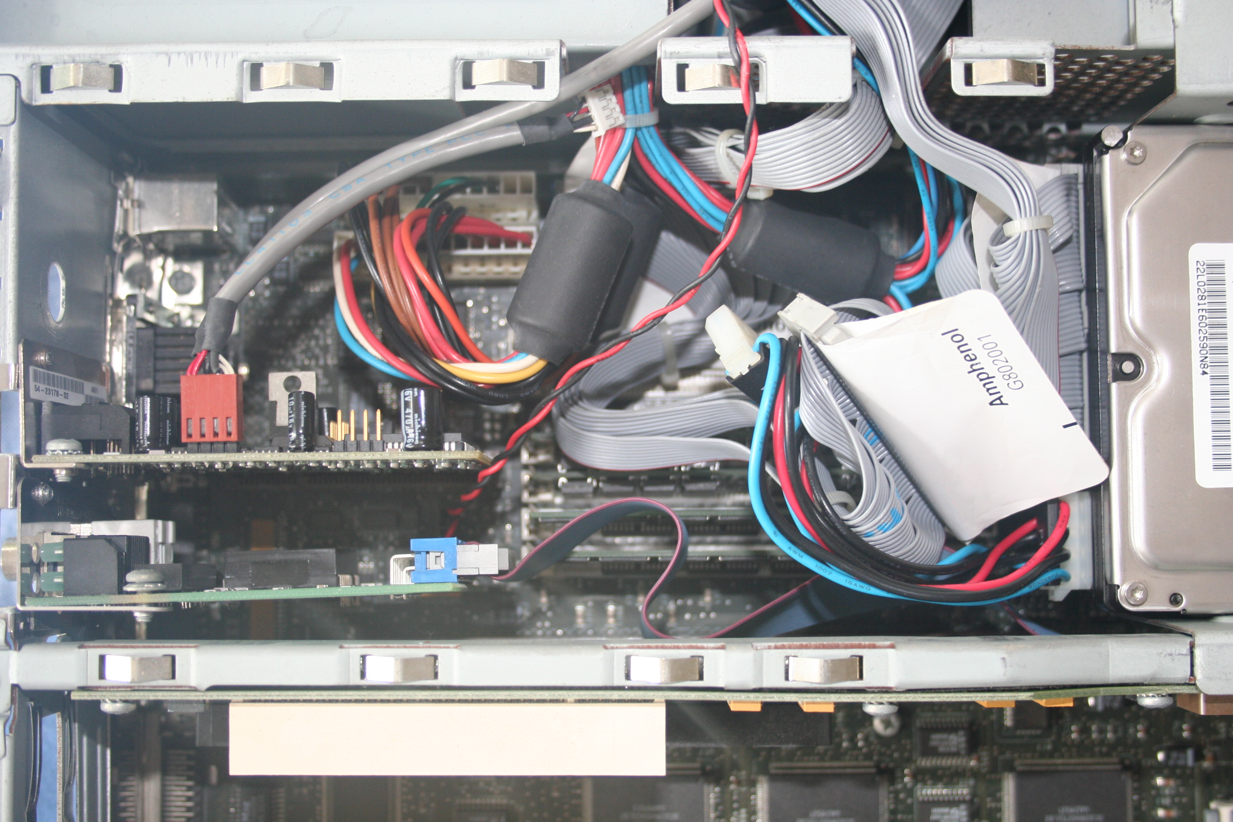 Right rear of the motherboard including sound and network boards, power connectors and RAM slots