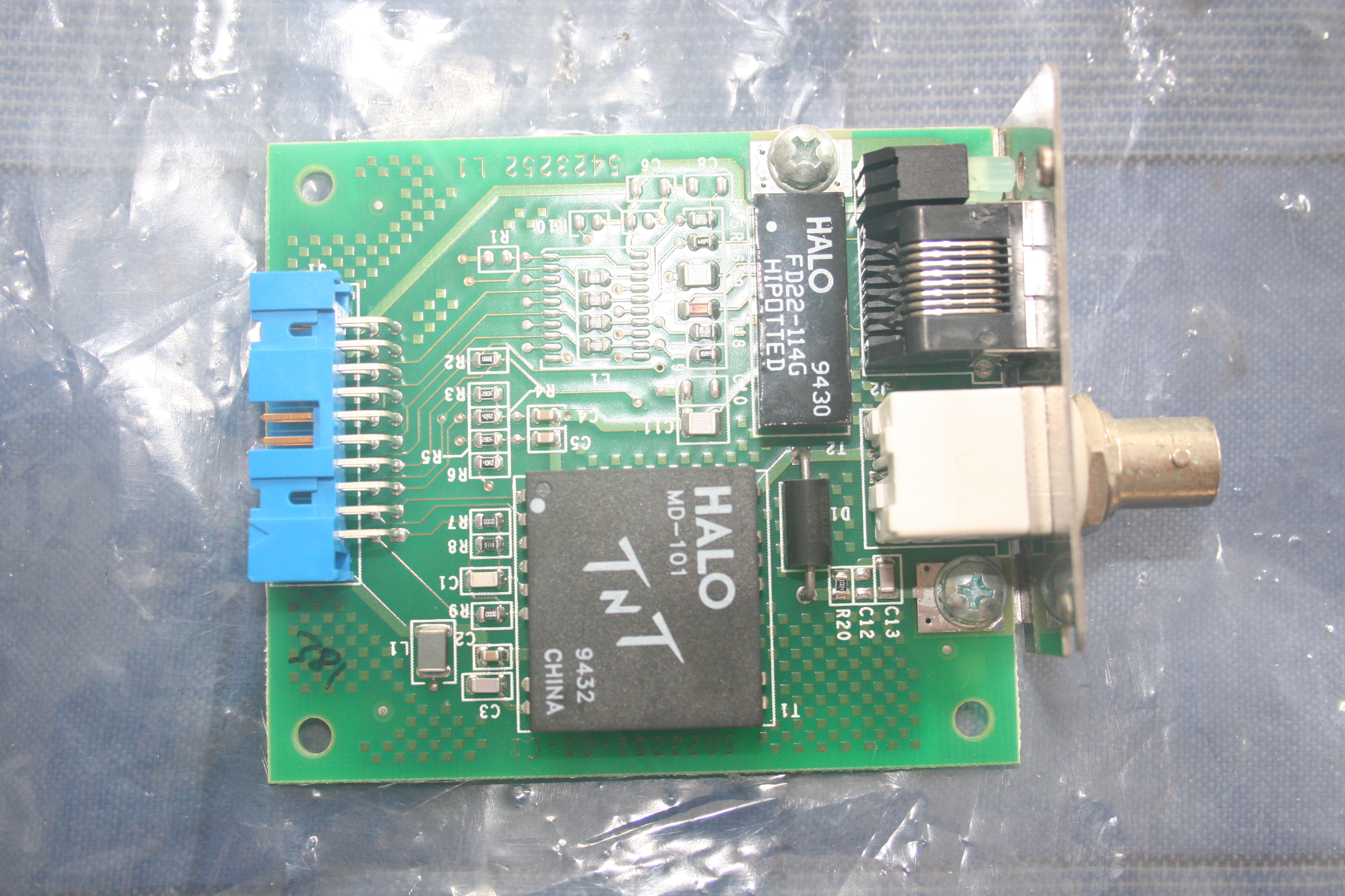 title="Top of the network board. This attaches to the riser board with a cable - it does not plug into the motherboard."/>