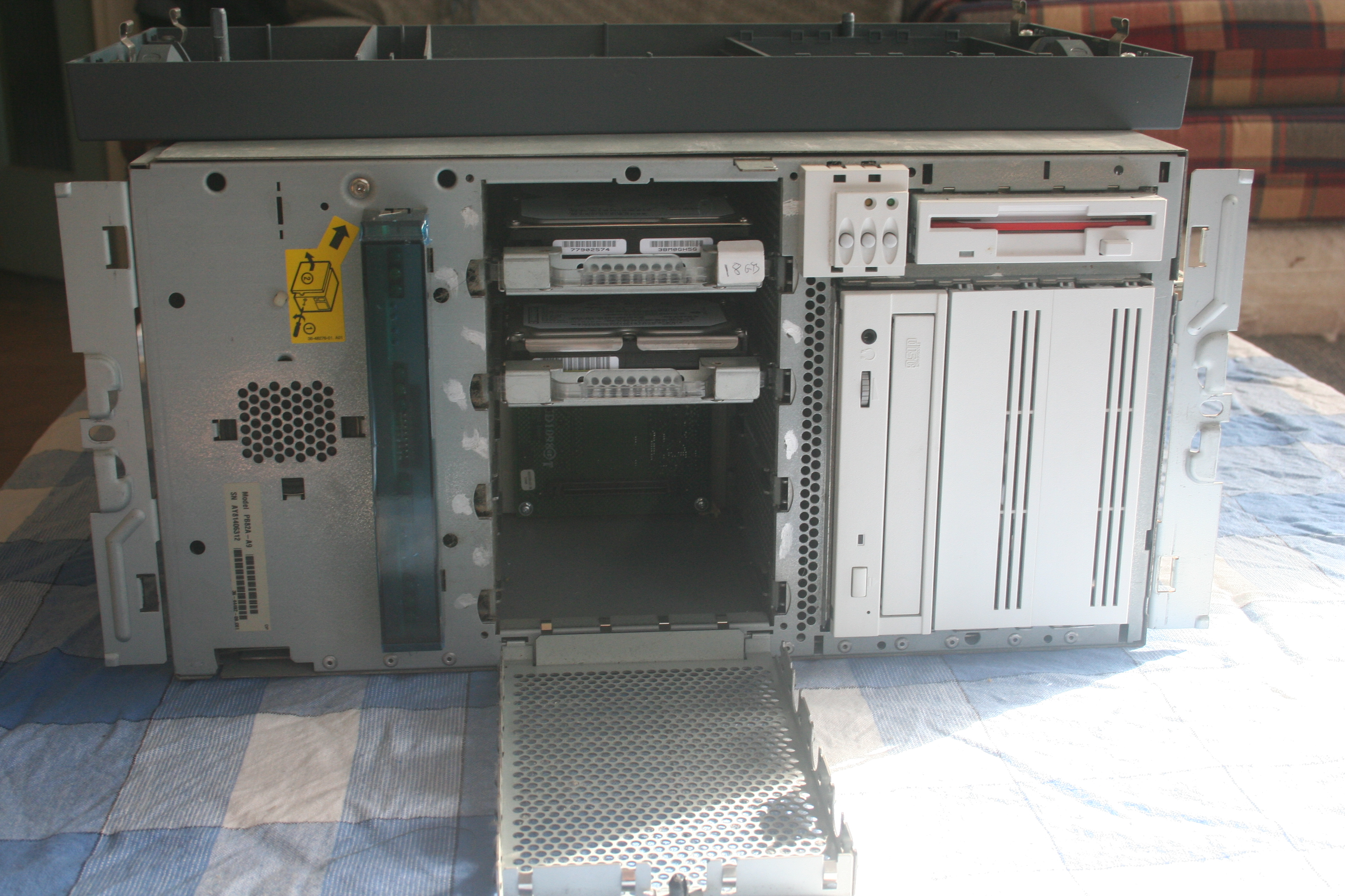 title="The four 3.5" hard disk bays live behind a metal panel."/>