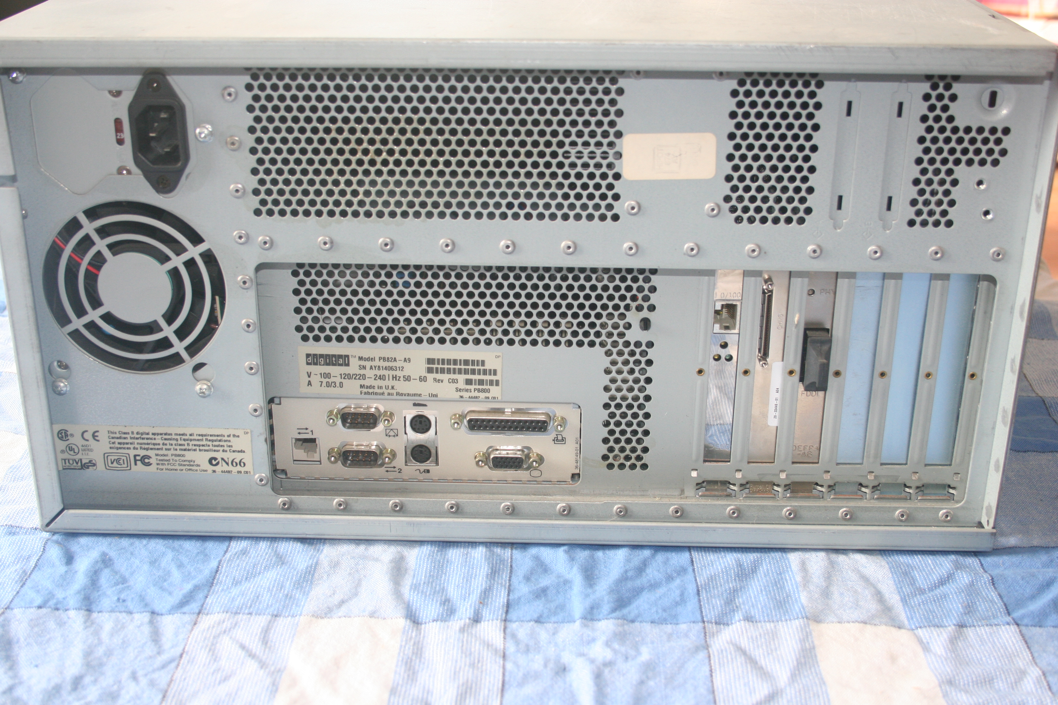 The back of the machine. The MMJ port is for the system console. The third card with the black thing is the FDDI card.