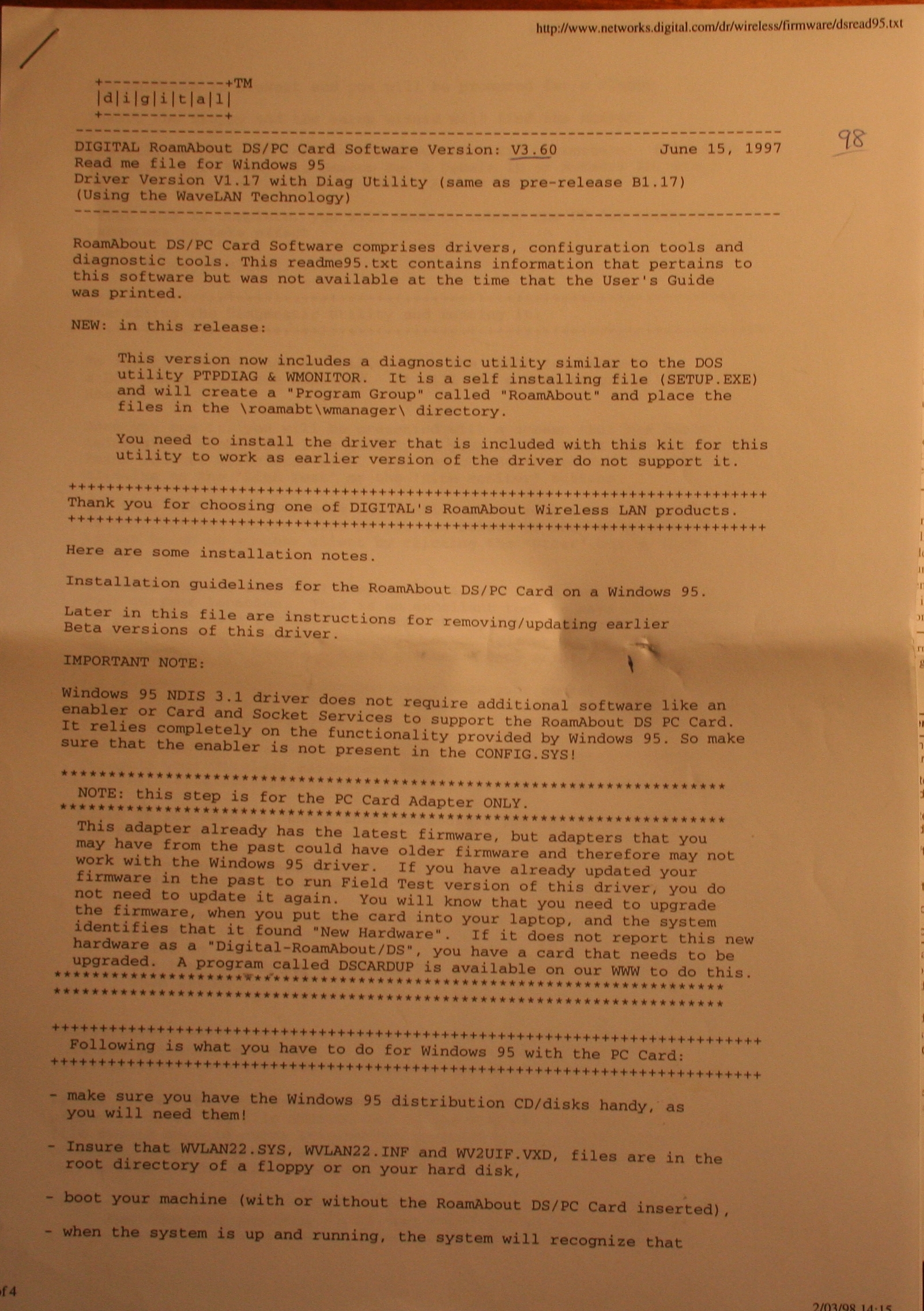 Readme from DECs networking website in 1998