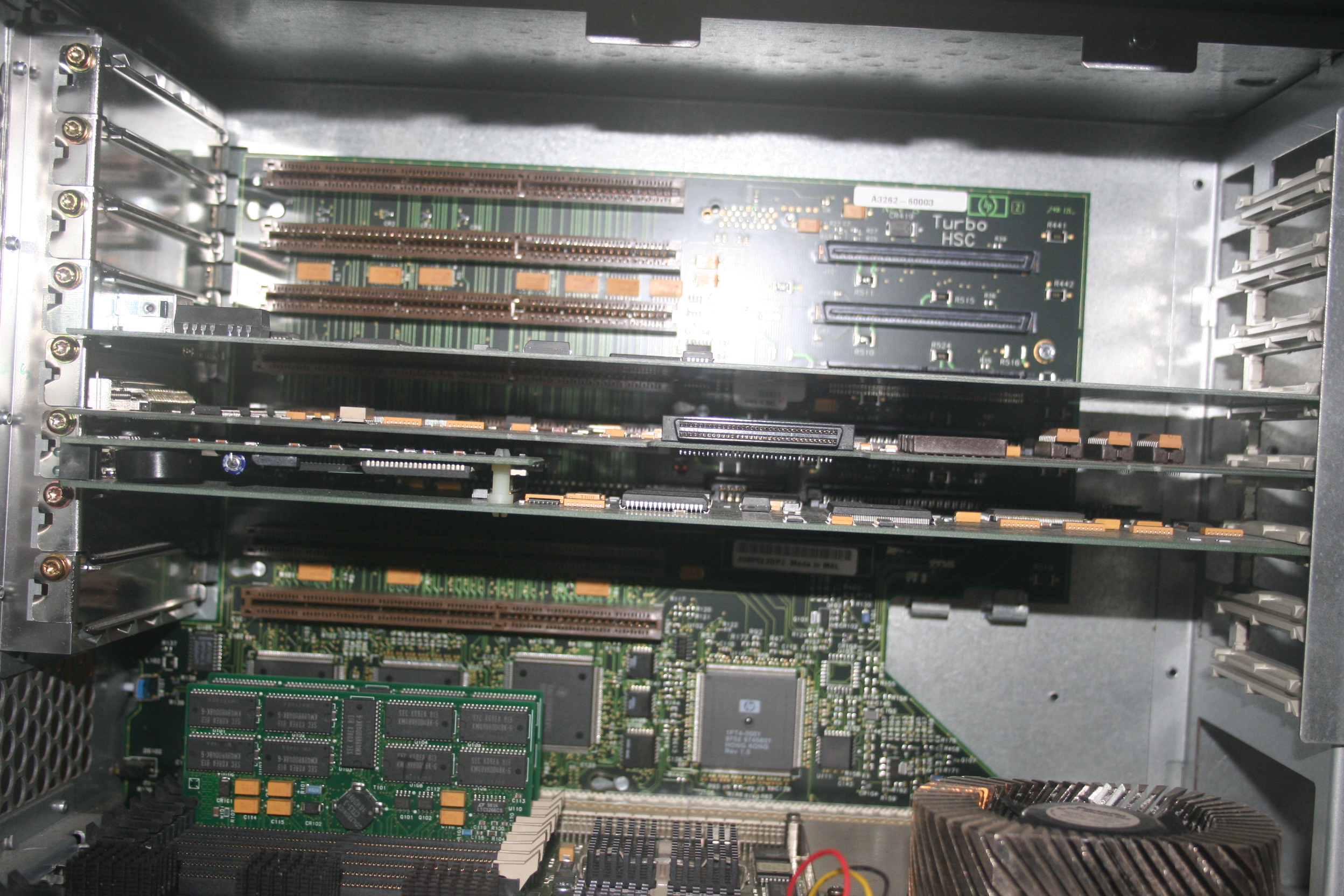 title="3 cards installed in the system. They all seem to be using the "Turbo HSC" plugs - nothing is attached to the brown ones."/>