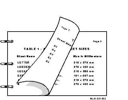ファイルを印刷するために使用する物理的な用紙のサイズまたは用紙の種類を,ユーザは指定することができます。 DECprint Supervisor ソフトウェアでは,この情報は次の要素から自動的に判断されます。