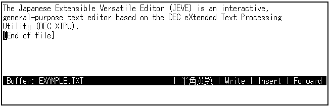 日本語 EVE を終了するときは,[Ctrl/Z] を押します。編集セッションは終了し,SAMPLE.TXT というファイルが作成されます。
