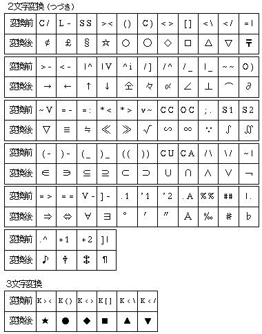 付録 C :ローマ字かな変換における特殊文字変換対応表