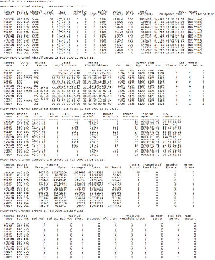 次に示すのは SHOW CHANNEL/ALL コマンドの出力例です。