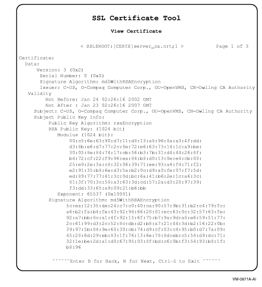 HP Open Source Security for OpenVMS Volume 2: HP SSL for OpenVMS > Chapter 3 Using the Certificate
