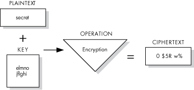 Figure 1-1 illustrates the data encryption operation. In this example, the input file contains the text "secret" and the key has been defined as "elmno jflghi." The output file is unreadable text. To gain access to the data in an encrypted file, reverse the encryption process by performing the decryption process. Decryption uses a mathematical encryption algorithm to change ciphertext into the original plaintext. Before decrypting a file, the software checks the validity of the key you provide. This validation is a checksum operation on the encrypted data stored in the first block of the ciphertext file. When you specify the AES/DES algorithm to decrypt a file, use the key that is identical to the one used in the original encryption process.