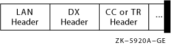 OpenVMS Cluster プロトコル用の DX (datagram exchange) ヘッダは,データを適切な OpenVMS Cluster ノードに渡すために使用されます。 DX ヘッダは 14 バイトの長さであり,
