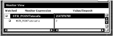 - 有効範囲を呼び出し元ルーチン (0 以外の呼び出しスタック・レベル ) に設定すると,現在位置ポインタは 図 10-19 のように白抜きになる。