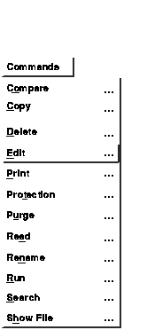 To display a dialog box when you use a command, choose the ellipsis (...) next to the command you want to use from FileView's Commands menu. If you do not select a file, FileView automatically displays a dialog box.