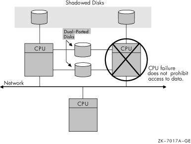 - ノード割り当てクラス値が 0 以外のコンピュータ上のすべてのクラスタ・アクセス可能デバイスには,クラスタ全体で固有の名前を与えなければなりません。たとえば,2 台のコンピュータのノード割り当てクラスの値が同一である場合,その 2 台のコンピュータの両方に DGA0 という名前のローカル・ディスクまたは MUA0 という名前のテープを接続することはできません。この規則は HSG および HSV サブシステムにも適用されます。