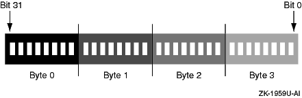 OpenVMS などのリトル・エンディアン・オペレーティング・システムでは,リトル・エンド,つまり,最下位有効バイトが最下位アドレスに格納されます。たとえば,0x1234 という 16 進数は 0x34 0x12 としてメモリに格納されます。 4 バイト値の場合も同様です。たとえば,0x12345678 は 0x78 0x56 0x34 0x12 として格納されます。ビッグ・エンディアン・オペレーティング・システムではこれとは逆の順に格納されます。たとえば,0x1234 は 0x12 0x34 としてメモリに格納されます。
