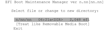 接続したデバイスが正しければ,ファームウェアから EFI Boot Manager の画面が表示されます。