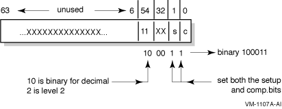 1. This example shows how to determine the value of the TCPIP$TELNETSYM_SUPPRESS_FORMFEEDS logical if you want level 2 form feed suppression at both job setup and job completion times. The value of the logical is determined by the bit settings shown in Figure 25-1.