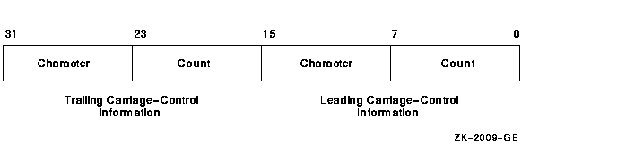 Bytes 0 and 1 describe the leading carriage control to apply to the input data record; bytes 2 and 3 describe the trailing carriage control.