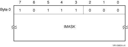 The high-order (leftmost) two bits of the first byte of the IMASK field correspond to the first instruction slot of the region. Bit pairs are read from left to right (high-order bits to low-order bits) within each byte, and bytes are read from increasing memory addresses. Each bit field describes the behavior of the corresponding instruction slot as follows: