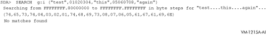 This SEARCH command finds the value 0010 in the words at FFFFFFFF.80000030, FFFFFFFF.80000040, FFFFFFFF.80000090, FFFFFFFF.800000A0, FFFFFFFF.800000C0.