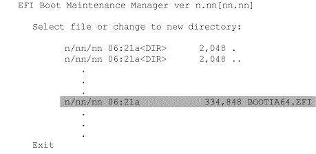 EFI は,オペレーティング・システムとシステム・ファームウェアの間の,メニューおよびコマンド行インタフェースです。EFI インタフェースは,オペレーティング・システムがブートされていないときだけ利用可能です。セル・ベースのサーバでは,nPartitions がアクティブ状態で,オペレーティング・システムがブートされていないときだけ,nPartitions コンソールからこのインタフェースを利用できます。オペレーティング・システムが動作しているときに EFI ブート・オプションを設定するために,OpenVMS Integrity Boot Manager ユーティリティ (SYS$MANAGER:BOOT_OPTIONS.COM)