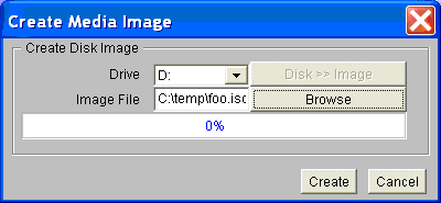 次の例のように,「Create Disk Image」ダイアログ・ボックスが表示されます。