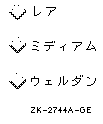 DECburgerは図 2-6に示すXmRadioBoxウィジェットを使用して, ユーザが一度に1項目だけを選択できる選択リストを提示します。Radio Box ウィジェットの各項目は,XmToggleButtonガジェットによって実現されています。
