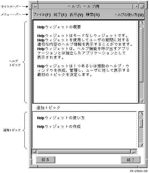 第4.7節で説明したように,Help ウィジェットの実現は,UIL またはツールキットのHelpウィジェット作成ルーチンのいずれを使用しても行うことができます。