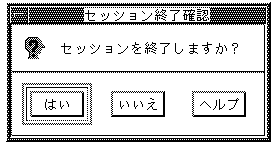 セッションを終了するには,セッション・マネージャの「セッション」メニューから「セッション終了」を選択します。 セッションを終了するかどうかを確認するダイアログ・ ボックスが表示されます。図 3-2にこのダイアログ・ ボックスを示します。
