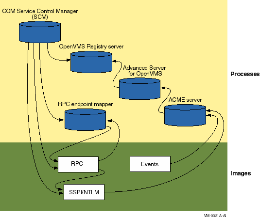 COM for OpenVMSは相互に関係する多くのサーバ(