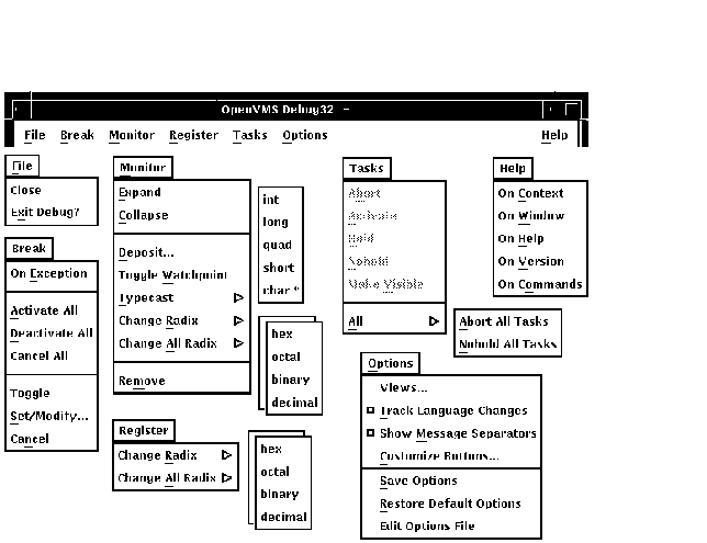| On Window | OpenVMS デバッガについての情報を表示する。 | |