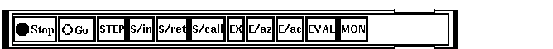「Call Stack」メニューは,ソース・ビューとプッシュ・ボタン・ビューの間にありますが, ここには,ソース・ビューに表示されているソース・ コードのルーチン名が表示されます。このメニューでは,現在スタックに入れられているルーチン呼び出しがリストされ, ソース・コード表示とシンボル検索の有効範囲をスタック上の任意のルーチンに設定できるようになっています( 第10.6.2項を参照)。