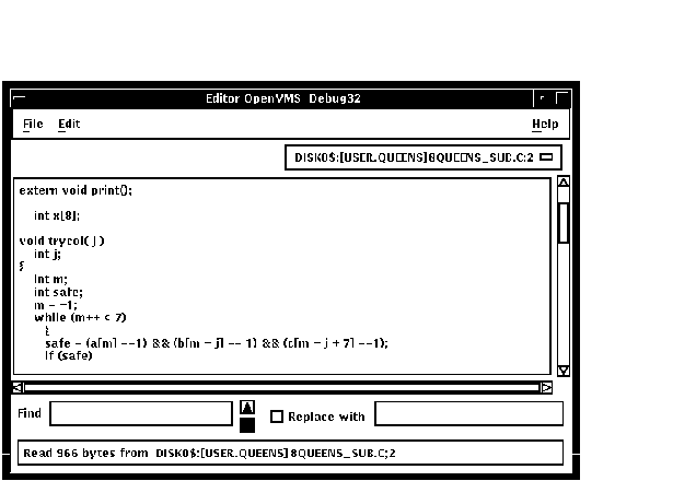OpenVMSデバッガには簡単なテキスト・エディタが用意されており,ユーザ・ プログラムをデバッグ中にソース・ファイルを編集することができます( 図 10-3を参照)。