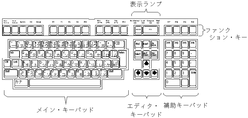 | [PF1]〜[PF4] | 補助キーパッドの1番上に並んでいるキーを指します。 |