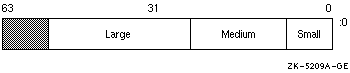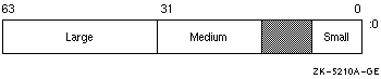 DEC C for OpenVMS Alphaシステムのコンパイラを使用してコンパイルした場合には, 図 7-2に示すように, 自然なアラインメントを実現するために構造体にパッドが挿入されます。 最初のフィールド(small)の後に1バイトのパッドを追加することにより, その後の構造体メンバはどちらもアラインされます。