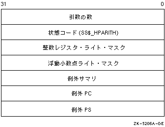 図 8-3は SS$_HPARITH例外シグナル・アレイの形式を示しています。