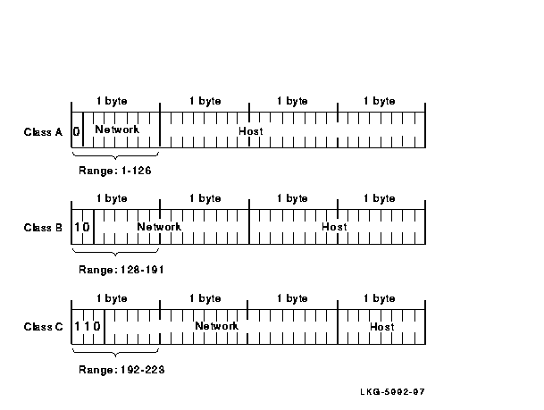 Figure 2-3 shows the bit positions of the IP address for the three network classes.